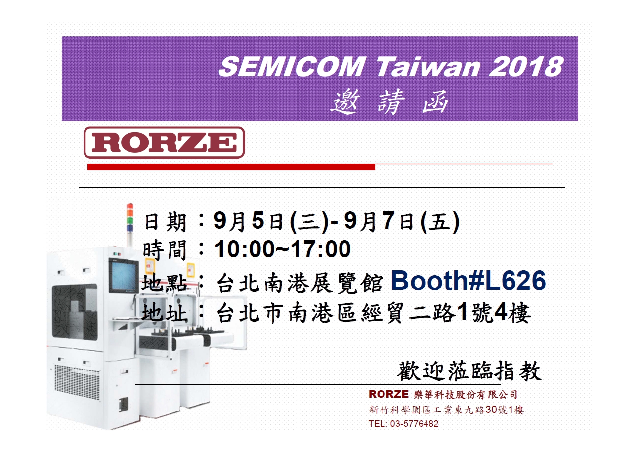 SEMICOM Taiwan 2018 歡迎蒞臨參觀