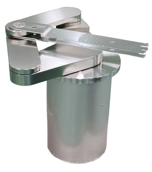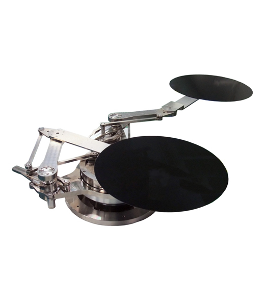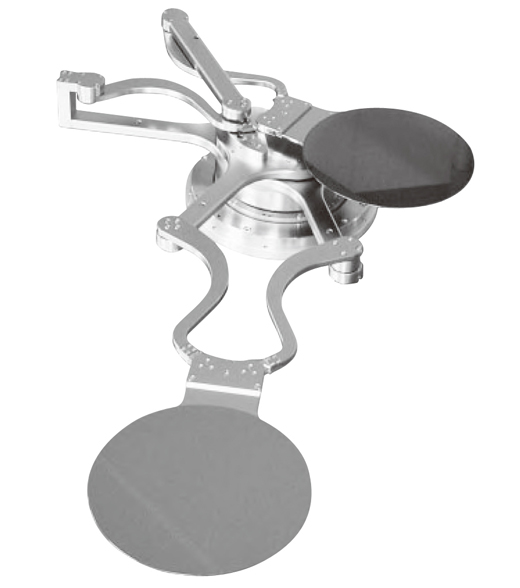 - Small-footprint chamber by boomerang arm with small turning radius.