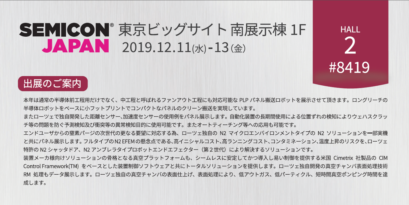SEMICOM Japan 2019 歡迎蒞臨參觀